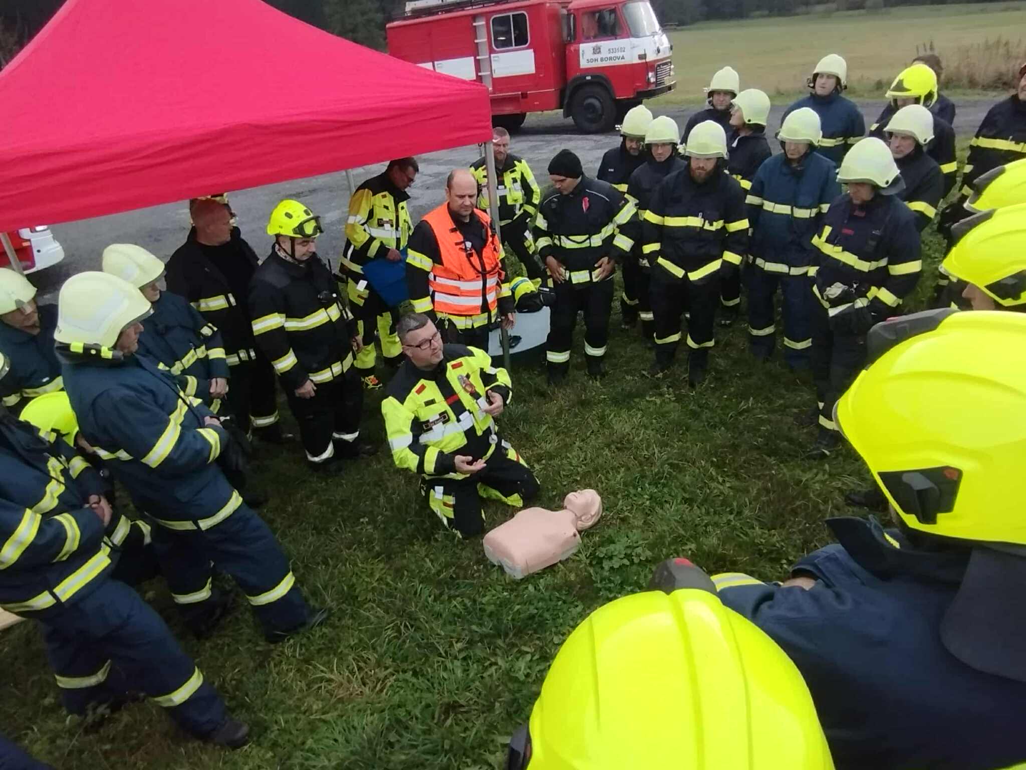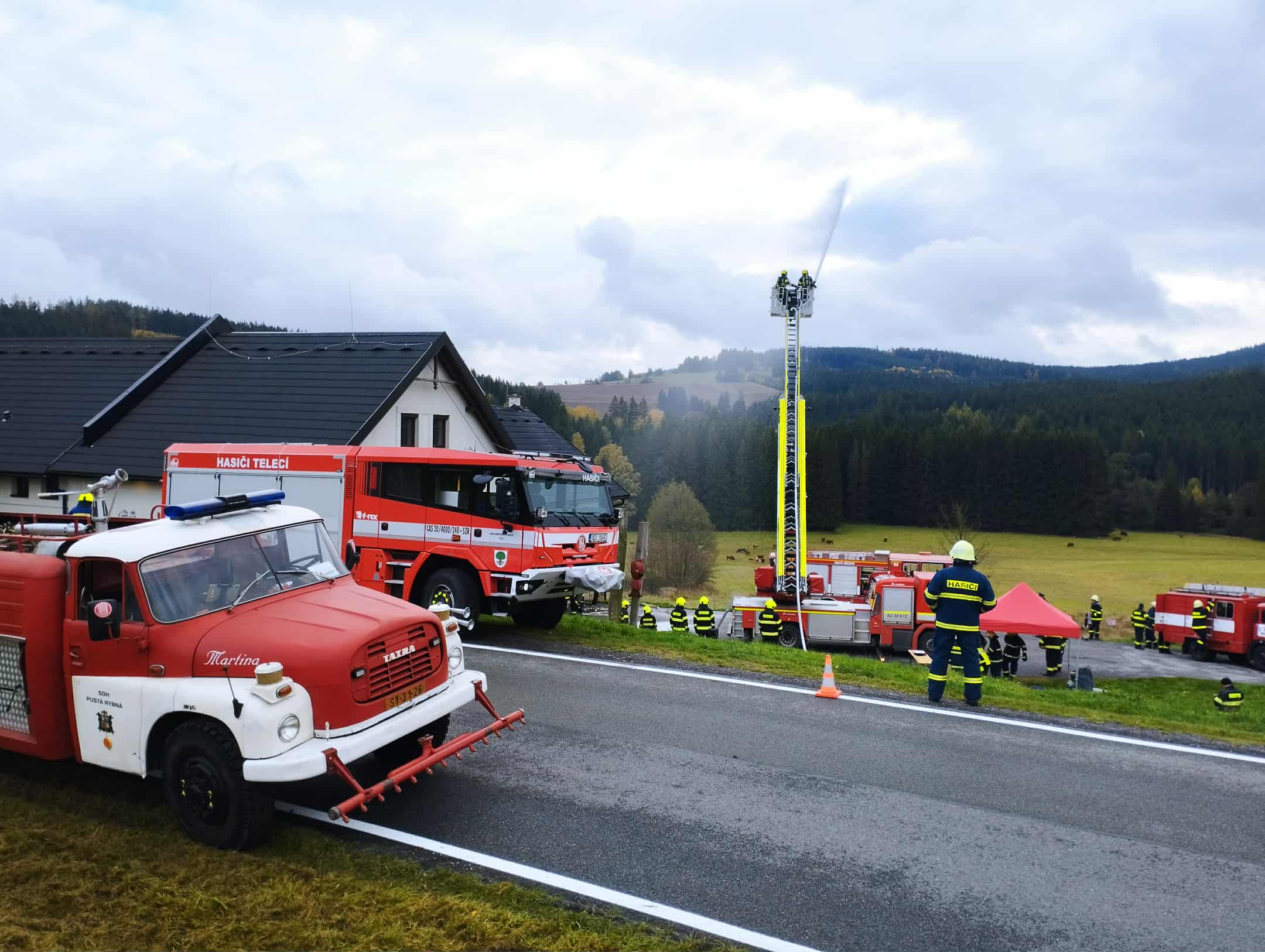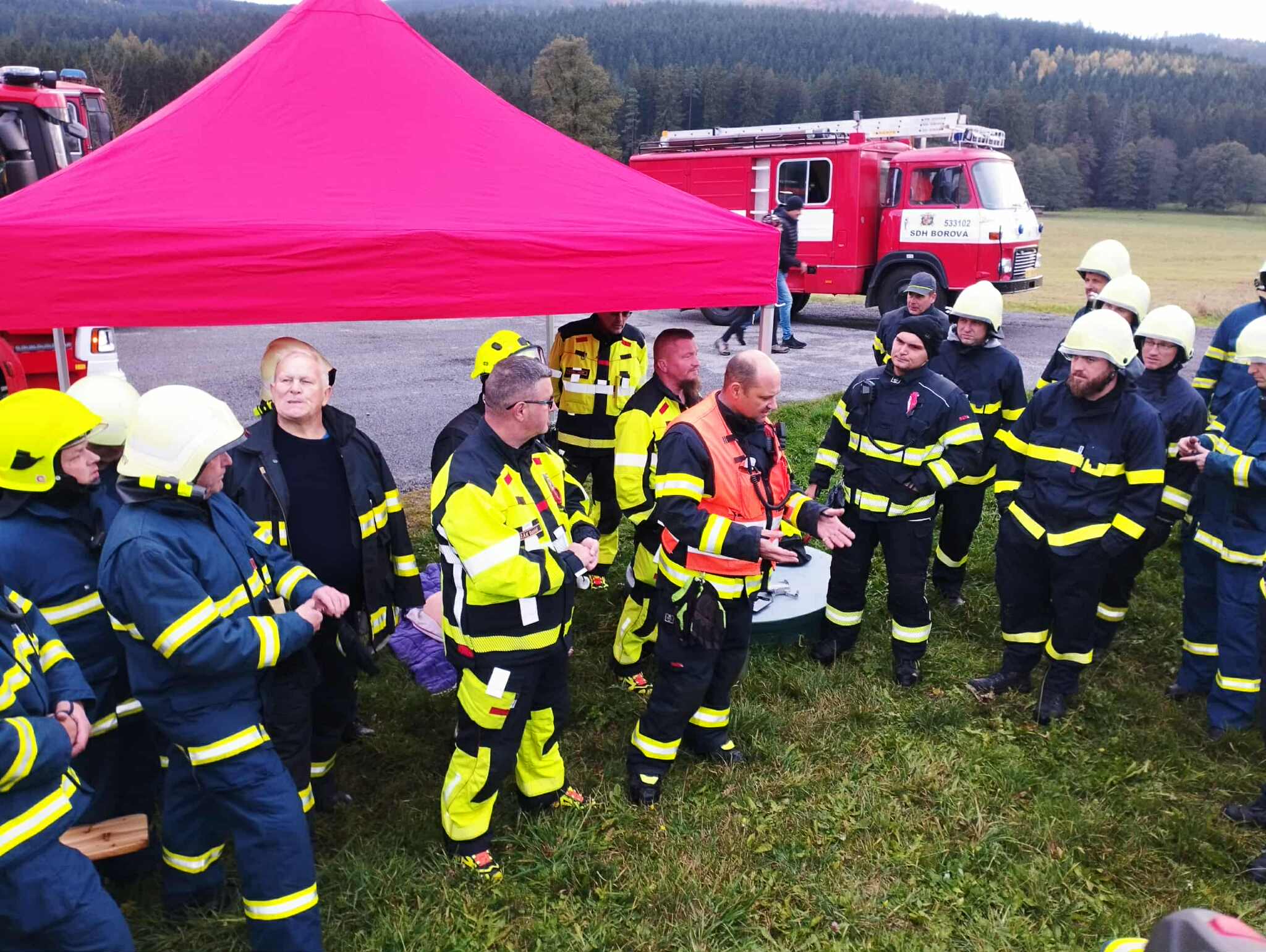 V pátek 17.10.2025 proběhlo v obci Březiny taktické cvičení jednotek okrsku Borová. Jednalo se o simulovaný požár střechy s fotovoltaikou u Penzionu na Bělisku.