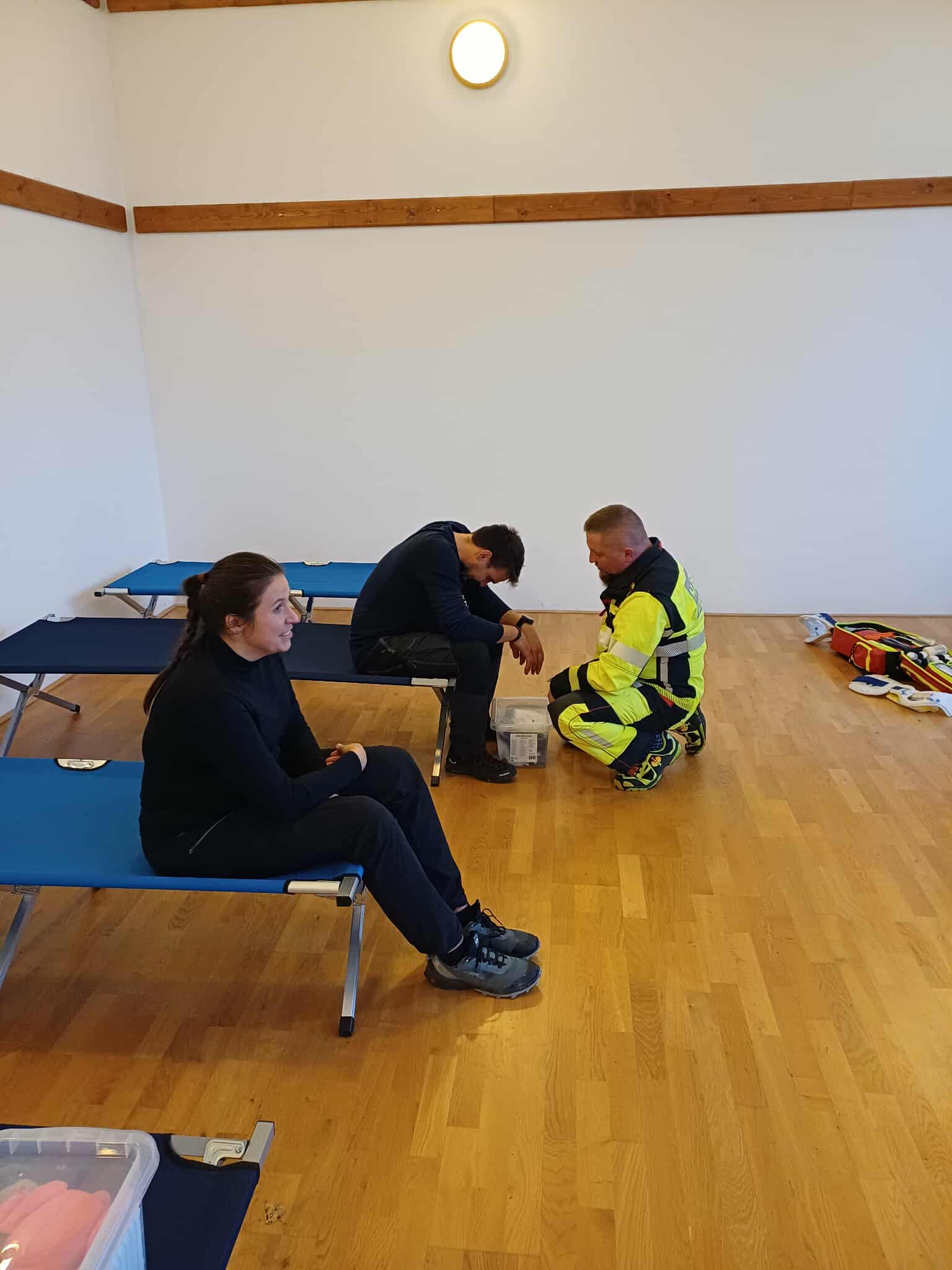 V průběhu cvičení, aktivoval starosta obce další členy skupiny dobrovolníků ochrany obyvatelstva SDH Březiny a požádal je o zřízení příjmového střediska pro evakuované osoby z penzionu, v místním kulturním domě. Členové skupiny připravili základní příjmové středisko, vybavené lehátky pro odpočinek evakuovaných osob a jejich ošetření. Po zaevidování osob tak došlo k jejich základnímu ošetření a také poskytnutí PSP.